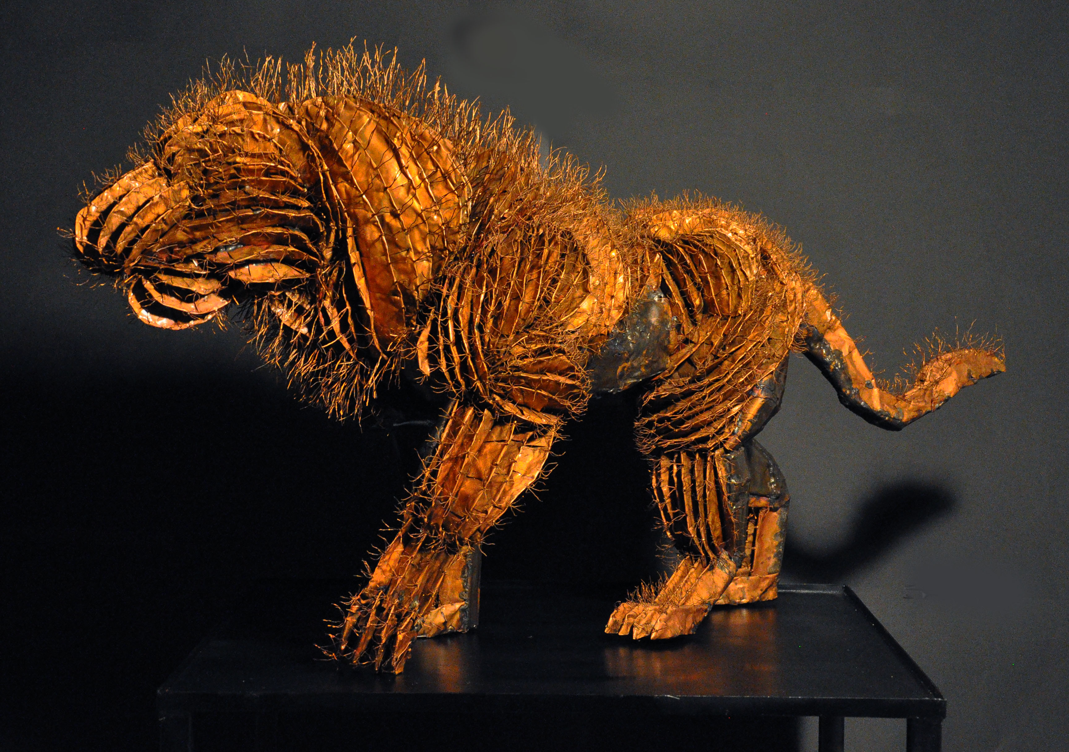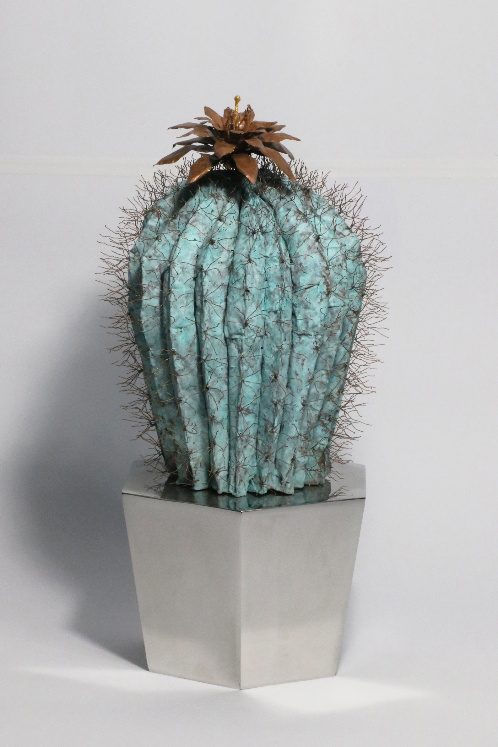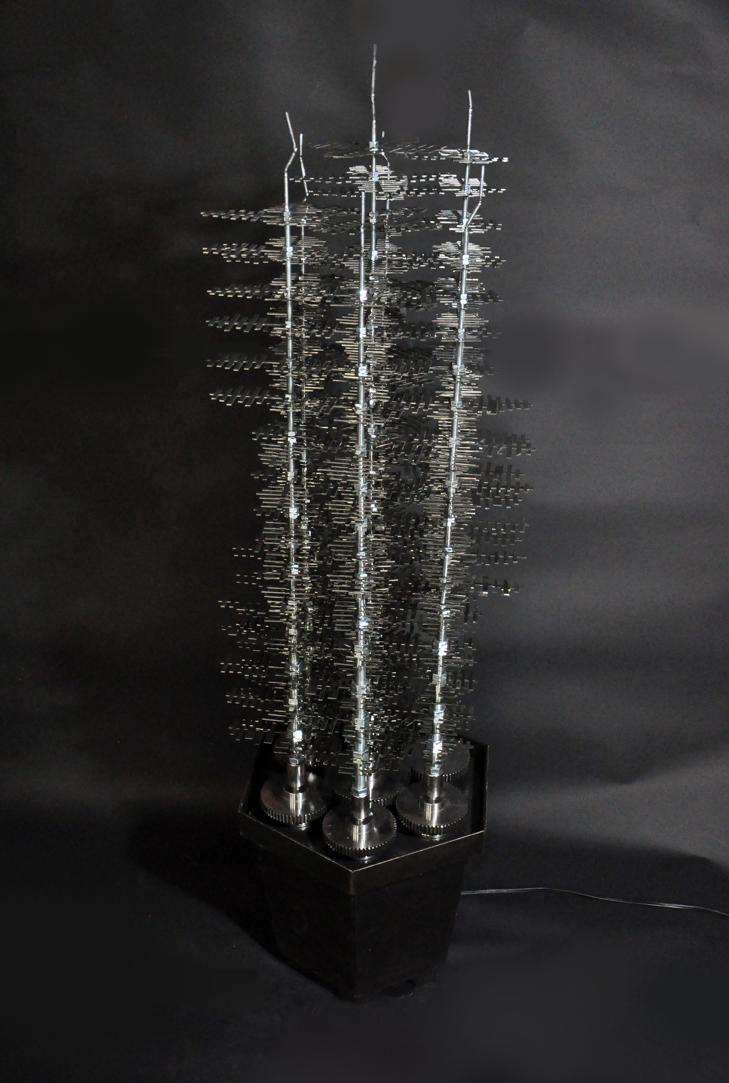 作品多以金屬及規格化的工業材料作為創作媒材,